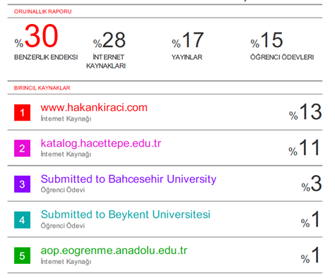 Üstte ki İntihal Raporu örneğinde İntihal Düşürme yaparken buna ilk sıradaki yani “1. Sıradaki www.h*k*….com” olan intihali düşürmekten başlayabilirsiniz. Danışman hocanız en yüksek orana bakacaktır sizde intihali düşürmeye en yüksek orandan başlamalısınız yani “1 sıradaki %13” olan orandan.