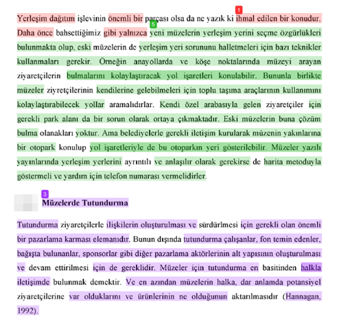 Aşağıdaki örnekte görüldüğü gibi intihal yapılan yerler, renkli olduğu için ortaya çıktı. Size vereceğimiz intihal raporunda, intihal olan yerleri görecek ve bu kısımları özgün cümlelerinizle değiştireceksiniz.